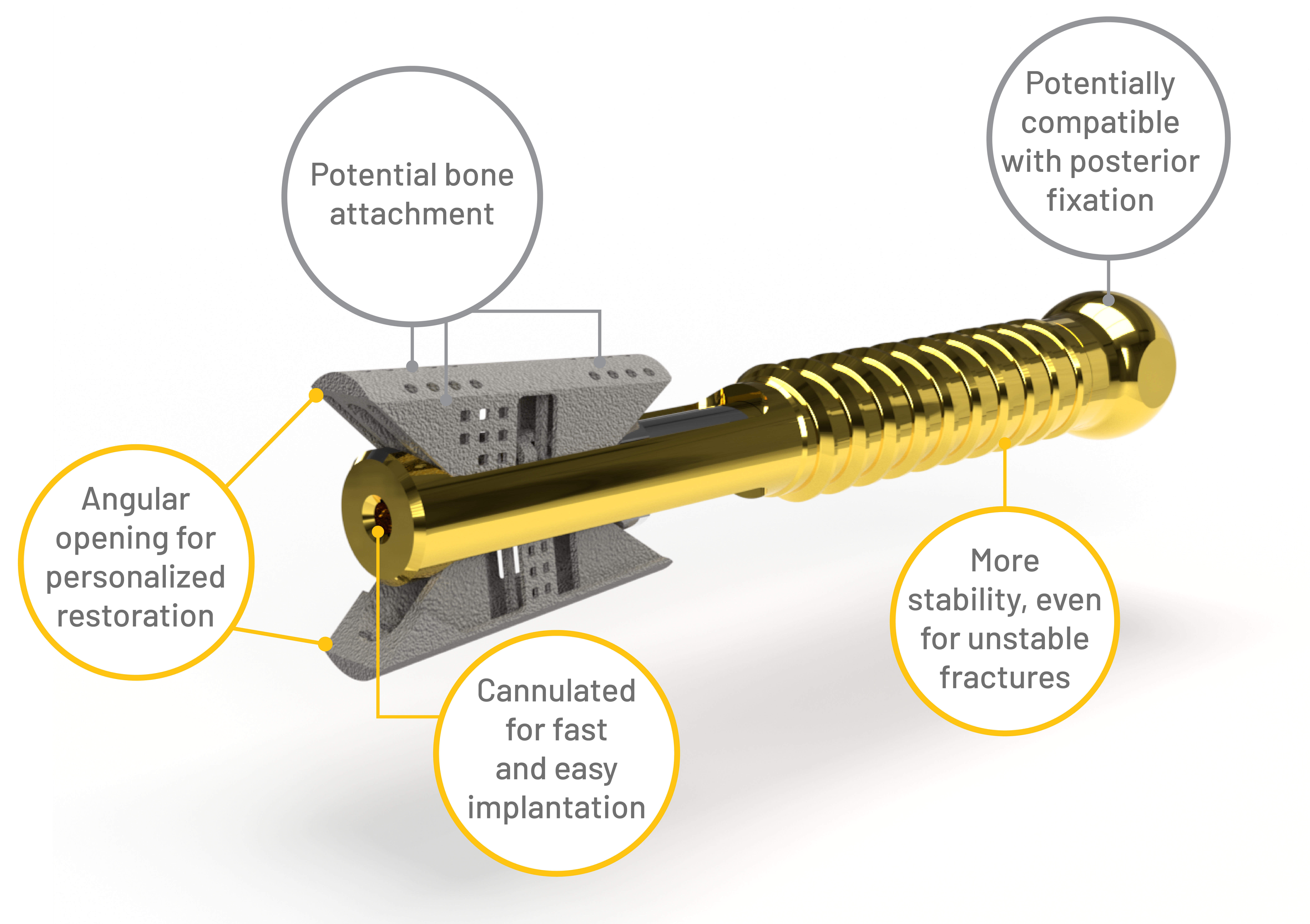 VCFix® implant comes in different sizes and has an adjustable angular expansion mechanism. This way, VCFix® provides an optimal fracture reduction and anatomical restoration for each patient.